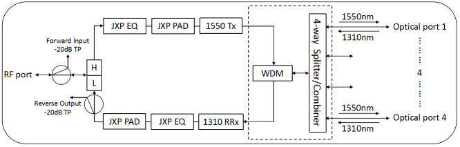 SQON-I Inversed Node, 1550nm Transmitter, 1310nm Reverse receiver, 4-Way Splitter/Combiner |